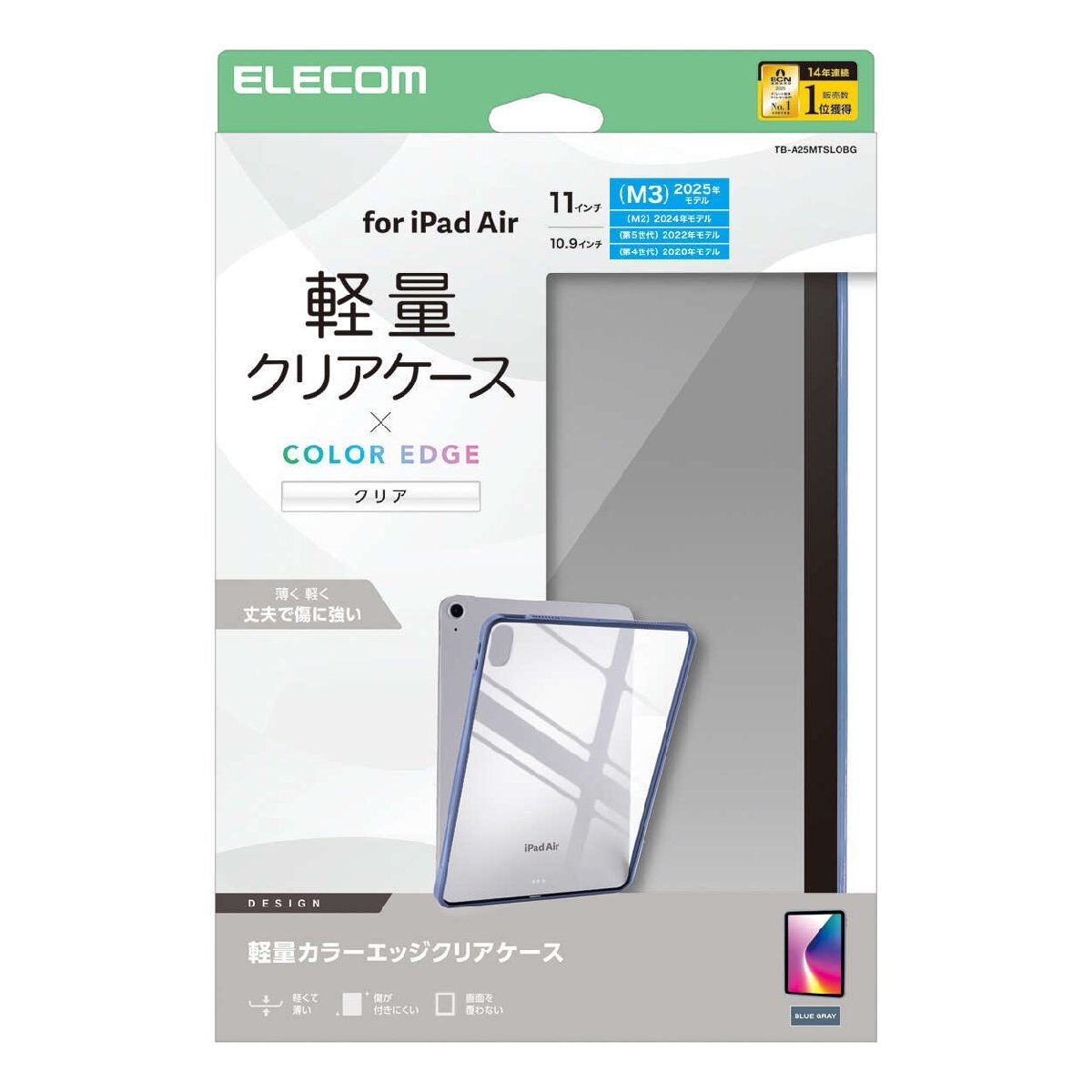 > 11インチiPad Air(M3/M2)用クリアケース エッジ部分のカラーがアクセントとなる軽く、衝撃に強い: TB-A25MTSLOBG