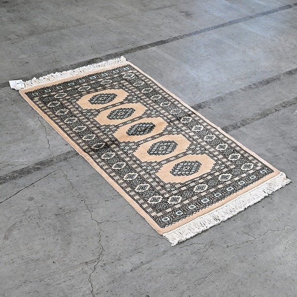 > 新品 未使用 パキスタン製 手織り ウール絨毯 ラグ ボハラ柄 ギュル文様 ハンドノット 羊毛 カーペット マット ホテル 応接室 P-126
