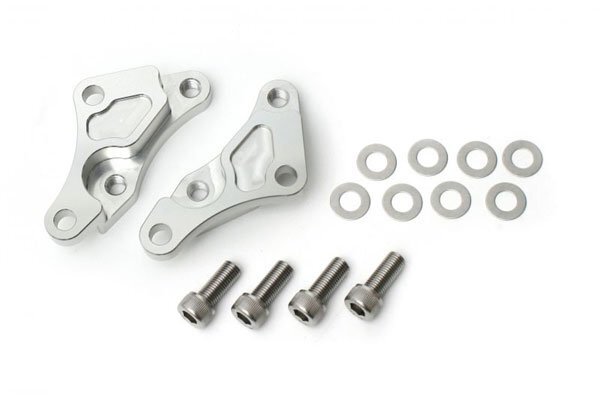 取り付けピッチが40mmや65mmのキャリパーを、スタンダードローターサイズに組み合わせるためのキャリパーサポート。