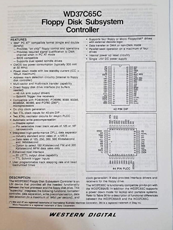 > 【WESTERN DIGITAL】WD37C65C Floppy Disk Subsystem Controller Data Sheet+Application Note(英文)