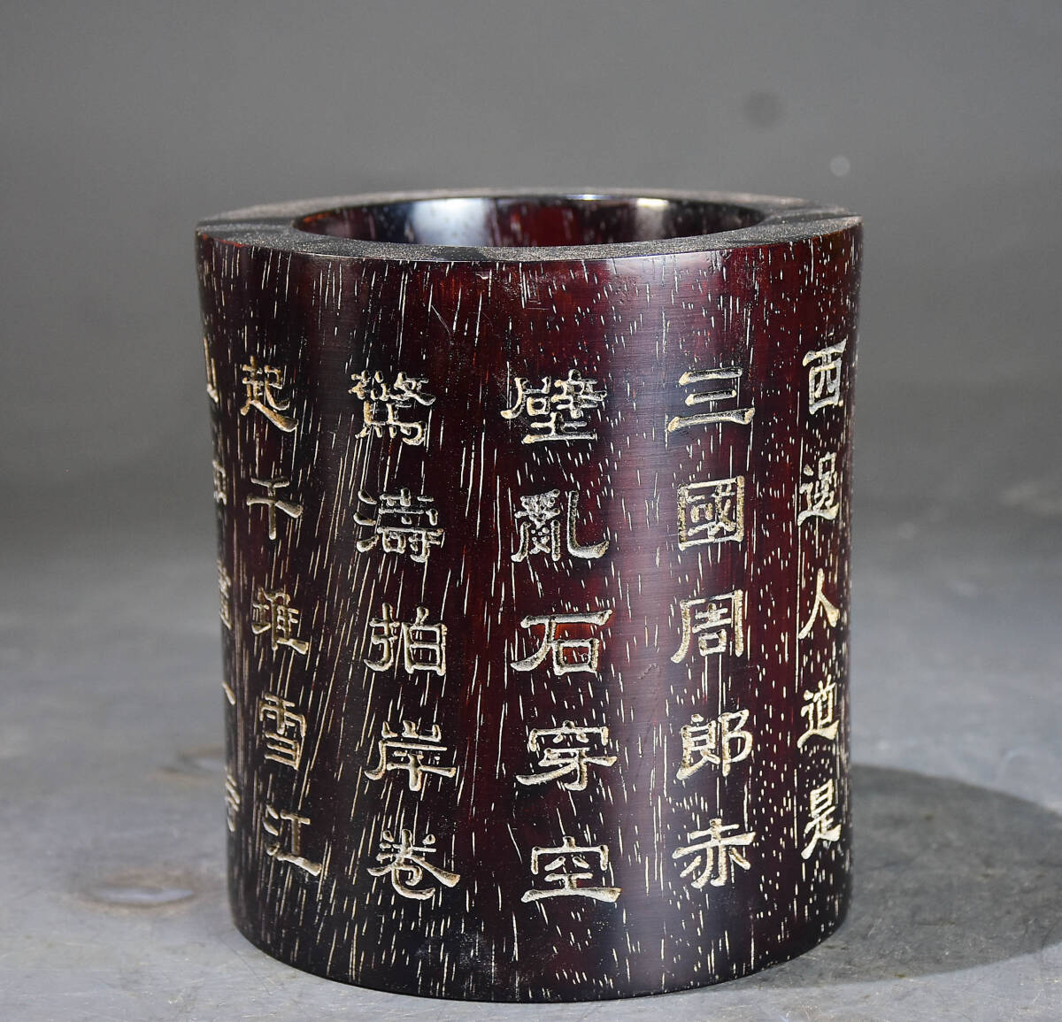 - 旧 清 紫檀木 彫刻 詩文筆立て 古家具 時代物 中国古美術 古賞物 古置物 唐物 S710