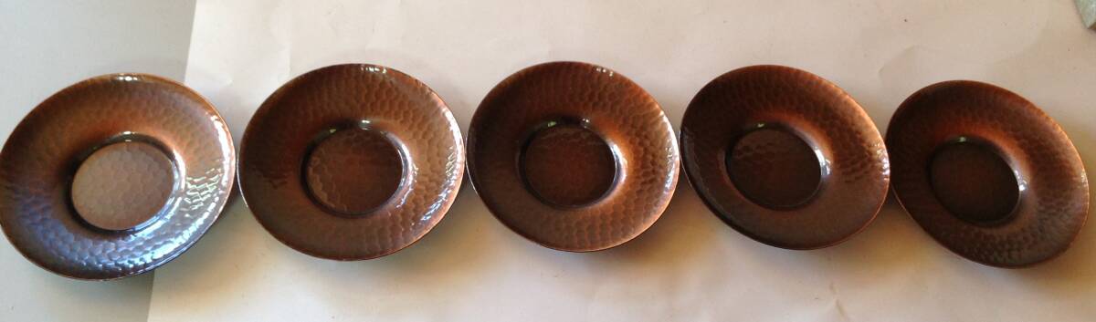 - *茶托 煎茶道具 桐仙堂 純銅 銅製 在銘 5枚 直径12cm 中古品 現状品*