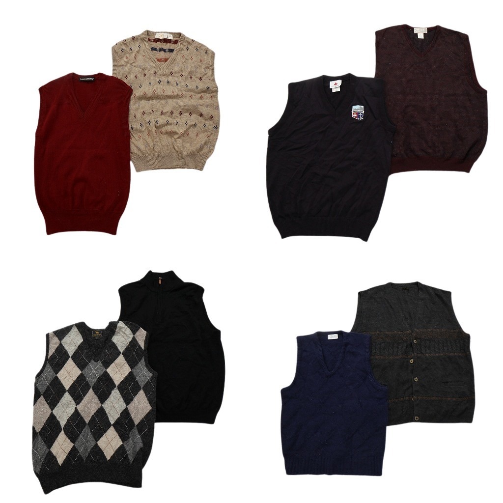 > 古着卸 まとめ売り ニットベスト セーター 8枚セット (メンズ M ) 総柄 カーディガン アーガイル柄 Vネック NC3090 1円スタート