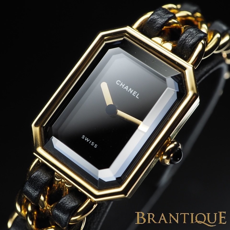 - ◆即決あり/箱/保◆ CHANEL シャネル プルミエール Mサイズ H0001 GP/革 QZ 電池交換済み ゴールドカラー レディース 箱 保 「27794」