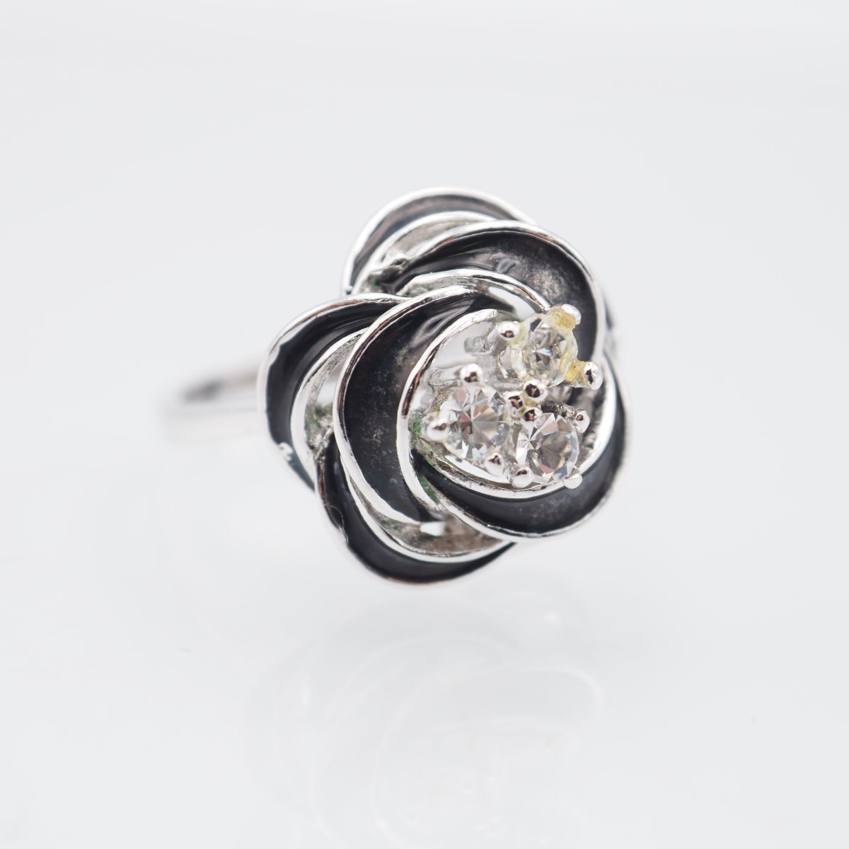 - G530 ダイヤモンド風 リング 薔薇 バラ ローズ ブラックエナメル デザイン シルバー 指輪 ヴィンテージ 11号