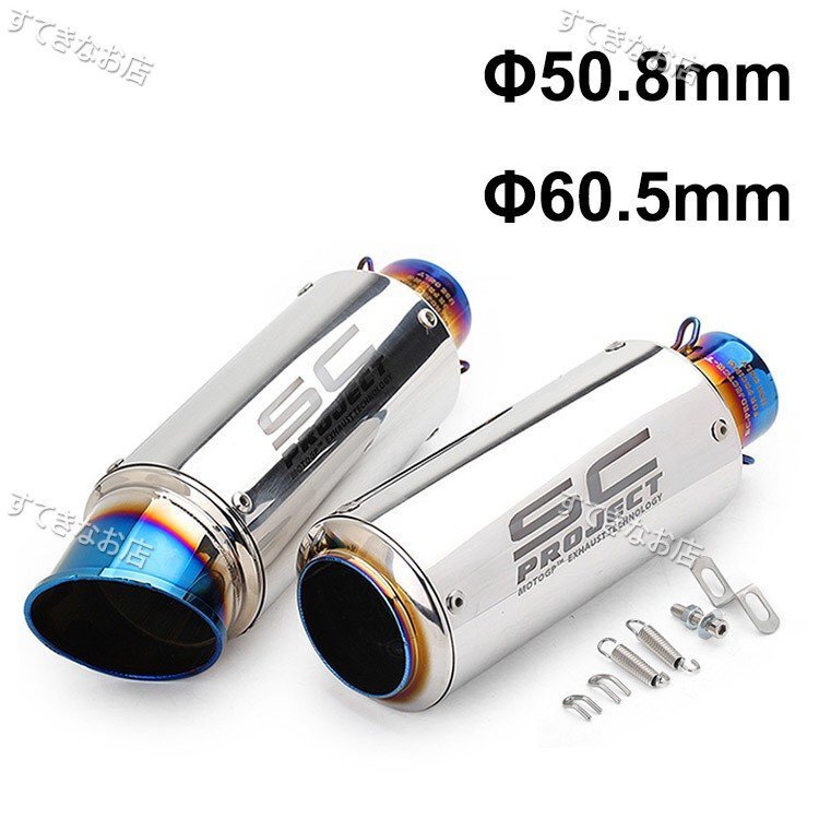 > バイクスリップオンマフラー バイクサイレンサー ステンレス 汎用 Φ50.8mm Φ60.5mm 長さ310mm 245mm 排気管 オートバイ排気パイプ