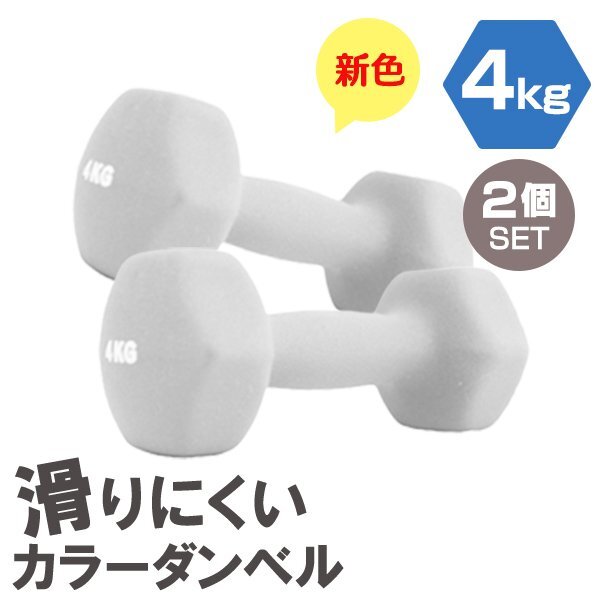 > 【2個セット/ライトグレー】滑りにくい カラー ダンベル 4kg 筋トレ エクササイズ 宅トレ シンプル ウエイトトレーニング ダイエット 新品