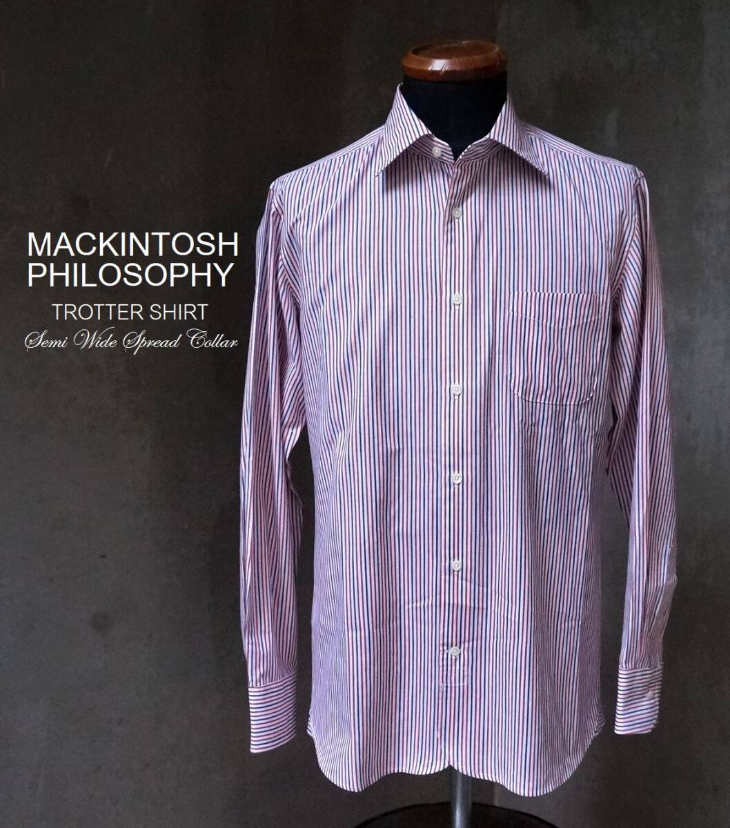 > 美品 マッキントッシュ フィロソフィー MACKINTOSH PHILOSOPHY TROTTER SHIRT 赤青ストライプ トロッター セミワイドシャツ 38 M