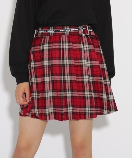 > ラスト 新品 PINK-latte ニコラ掲載起毛プリーツ スカート ワインレッド(263) 15(XS150cm) 定価3190円