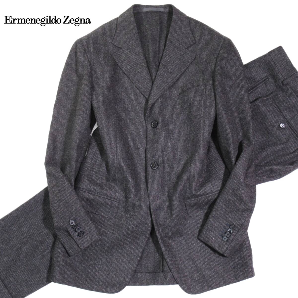 - エルメネジルドゼニア Ermenegildo Zegna カシミヤ ウール ストライプ 3B シングル スーツ 48 L