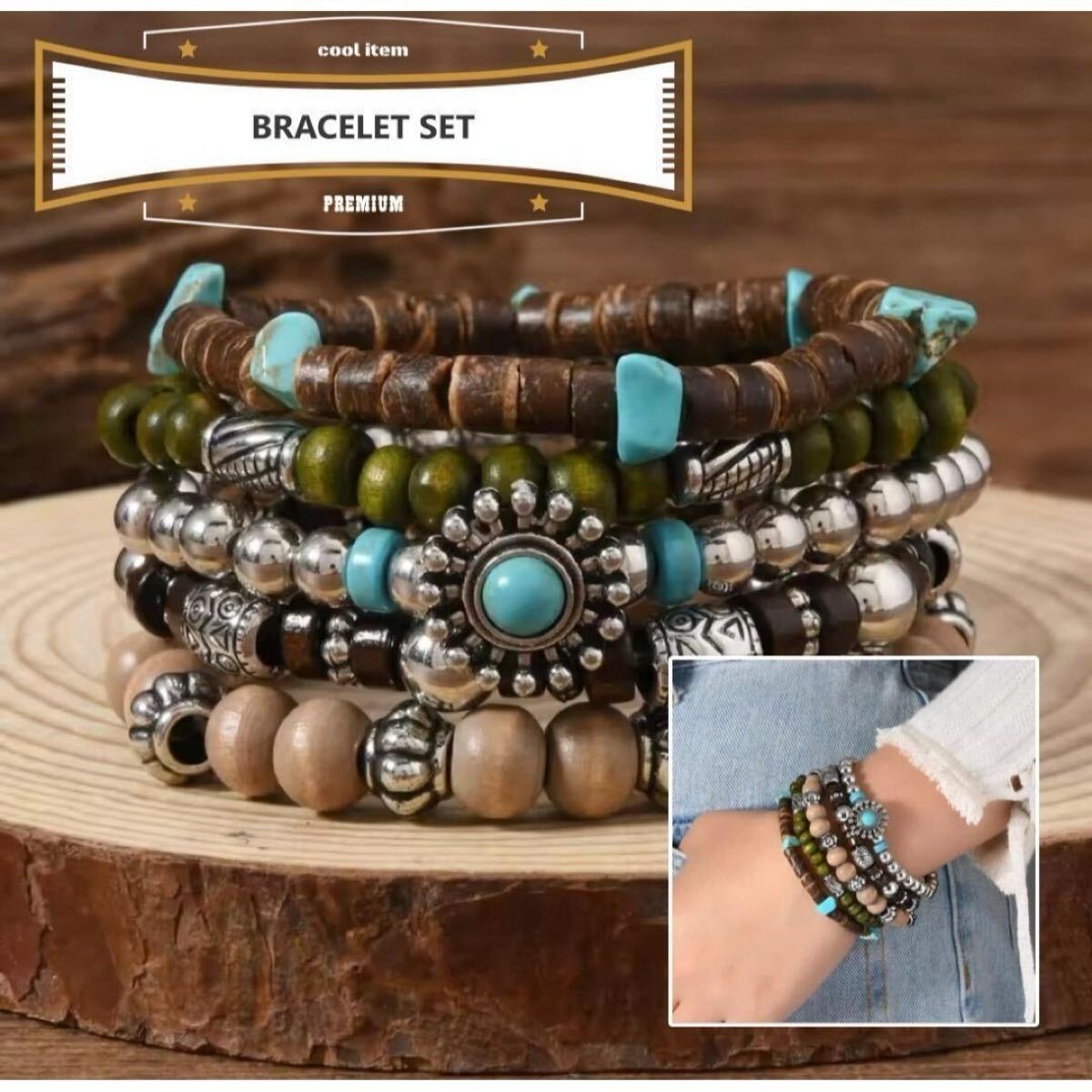 - 【豪華5連セットⅡ】ウエスタンアメカジブレスレット*ターコイズビーズブレスレット