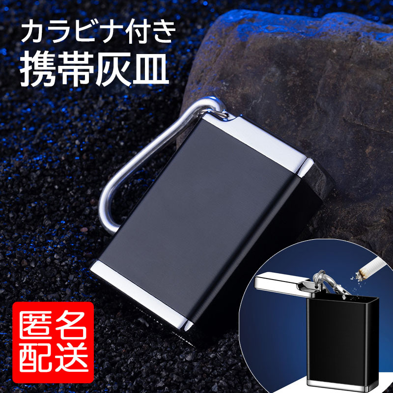 - 携帯灰皿 カラビナ付き おしゃれ 角形 小型 蓋付き タバコ 金属製 吸い殻入れ 軽い 軽量 喫煙 マナー ミニ灰皿 ポケット灰皿 便利 屋外