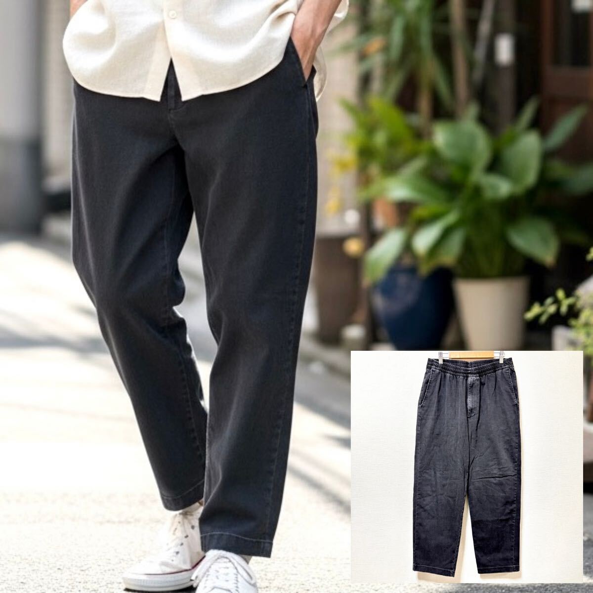 > おしゃれ&リラックス◎【UNIQLO】ユニクロ イージー デニム パンツ ジーンズ アンクル ストレッチ カーブ ダークグレー メンズ M /Y36858SS