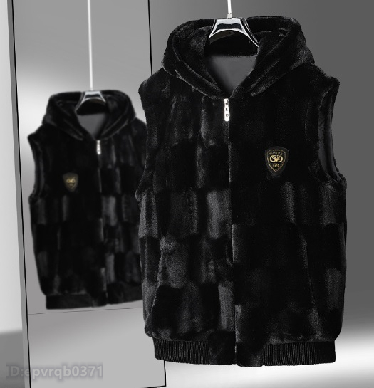- ファーベスト♪新入荷 メンズ フード付き 毛皮 ベスト フェイクファー 紳士 秋冬 暖か サイズ選択可 黒/XL