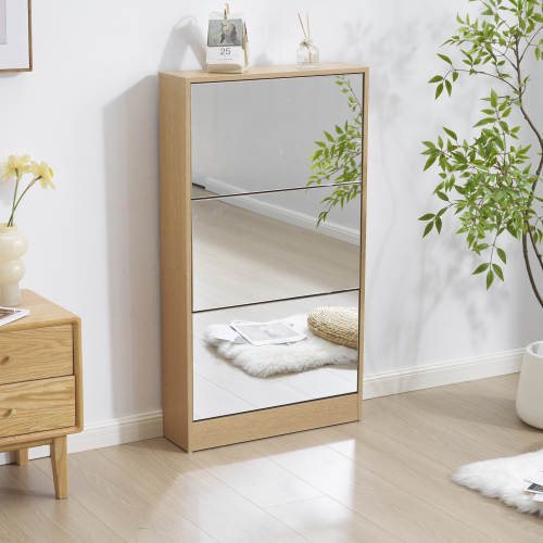 - 【鏡タイプ】下駄箱3段 シューズラック 玄関収納 ひとり暮らし スリムタイプ 靴収納ラック 靴収納棚 倒れ防止道具取付必要 KU810