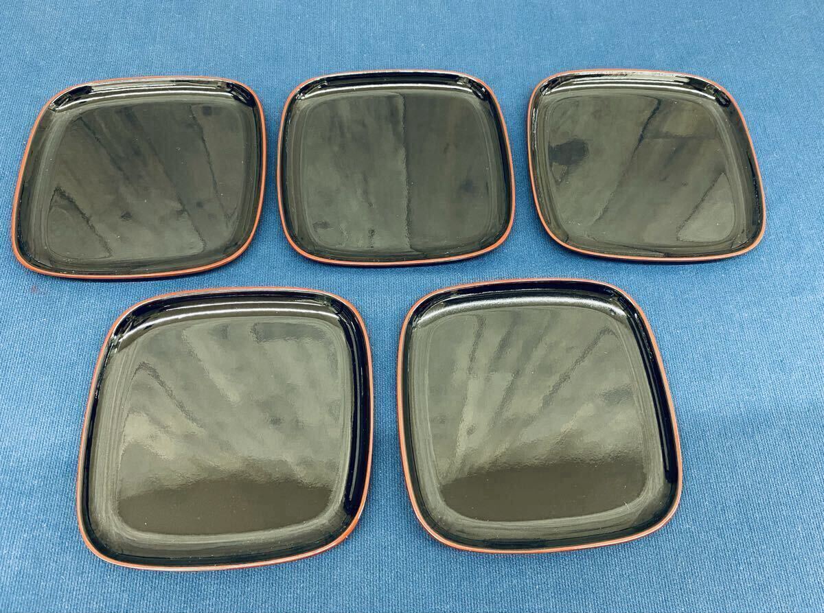 - 〈N8796〉菓子皿 5枚 セット 漆器 菓子器 黒 小皿 和食器