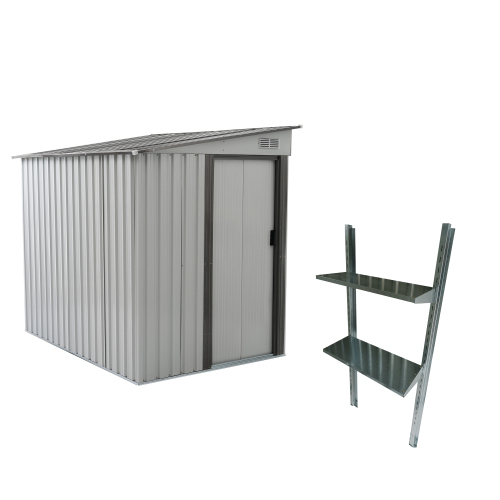 - 【可動棚付き】物置 屋外 スチール 倉庫 戸外収納庫 幅153*奥行き206*高181 可動棚付き 物置き おしゃれ 大型 収納庫 【ホワイトグ KU538