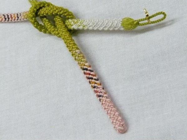 - 羽織紐 レディース 組紐 羽織カン付き 羽織ひも 黄緑×白×ピンク 組紐 031 ggp