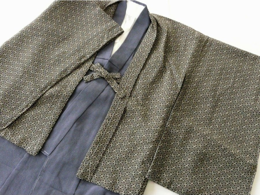 - 洗える着物 男の子 アンサンブル 3才 羽織 着物 襦袢 紗綾形 紫 100