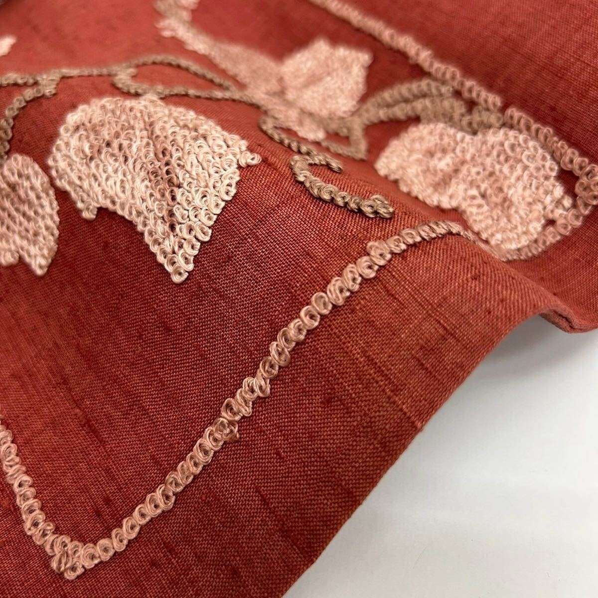 - 名古屋帯 紬 可愛い蔦模様の刺繍 九寸 正絹 着物 W-4904