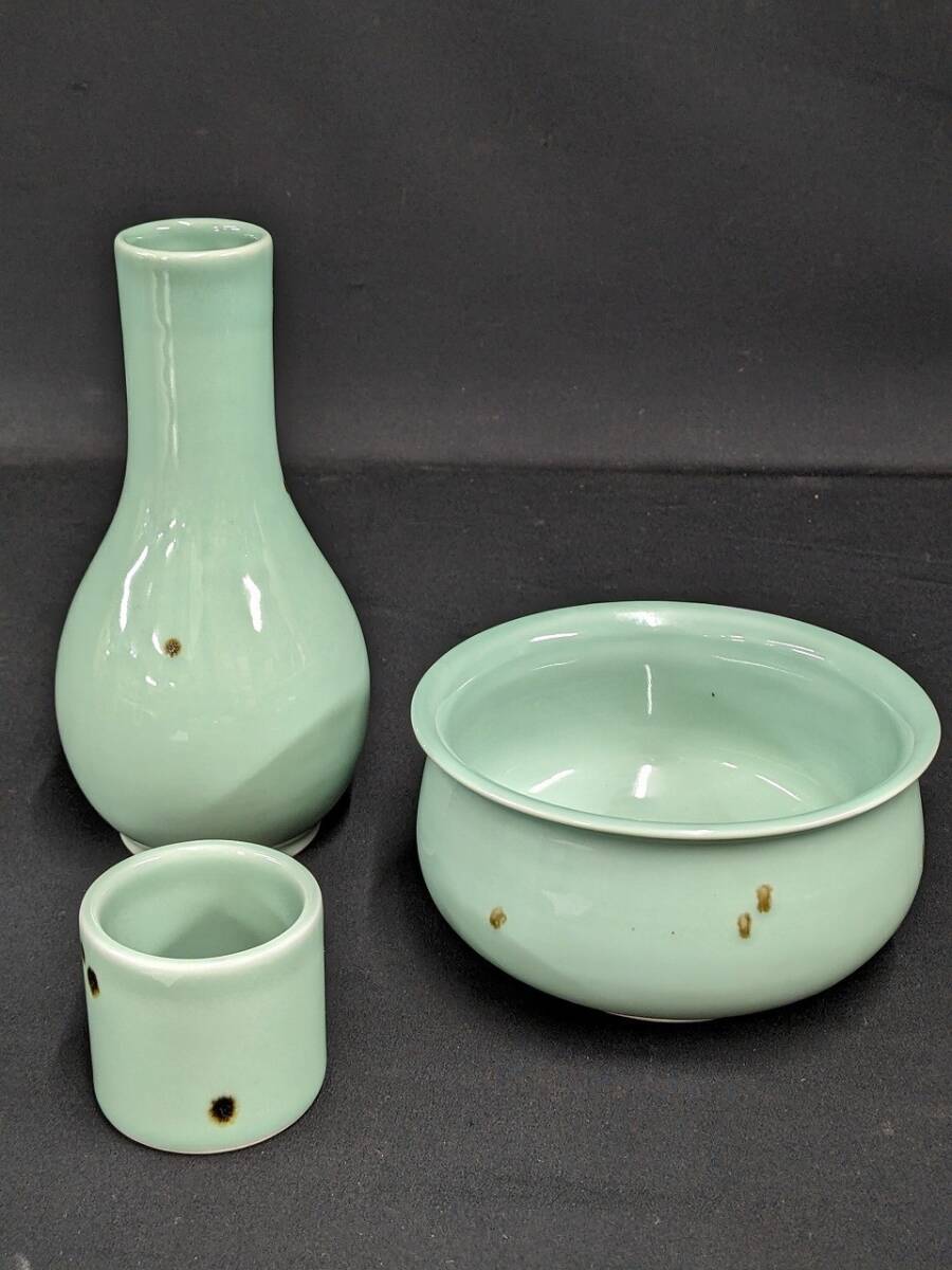 本体サイズ・建水約13.5x7.5cm 蓋置約5.7x5.4cm 花瓶約8.5x18x口径4.2cm