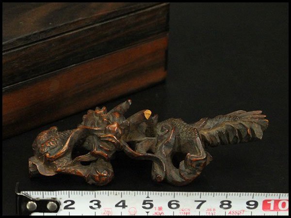 - 【銀閣】木彫 龍根付 唐木 箱 時代物 旧家蔵出 送料無料(LC792)