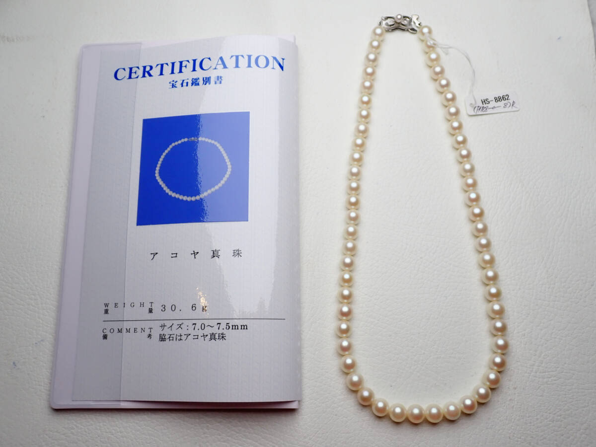 - 10●アコヤ真珠 ネックレス 7.0~7.5mm 30.6g 鑑別書付