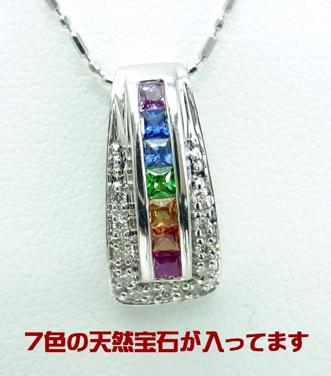 > ルビー サファイア ツァボライトなど7色宝石 レインボー K18ホワイトペンダントネックレス 商品動画 送料込み