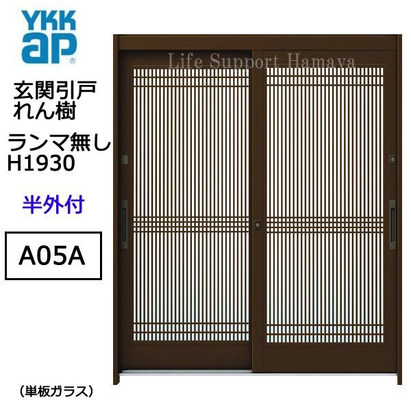| ■ 商品名 | アルミサッシ 玄関引戸 れん樹 A05A 半外付 ランマ無し 単板 |