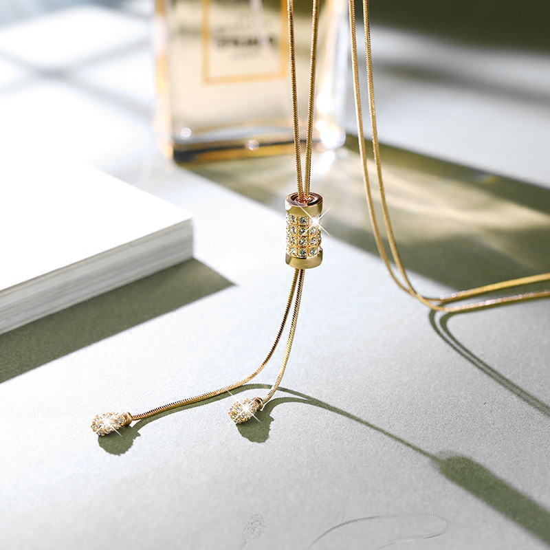 - 着けるだけ細身シルエット★シンプル タッセル付ゴールドネックレスk18色★ドレス