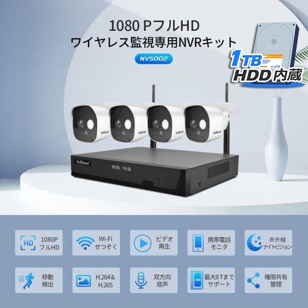 - ★送料無料・30日間保証付き★防犯カメラ4台セット 1TB HDD内蔵 監視カメラ 屋外 IP66防水 監視カメラ 遠隔監視&動体検知 暗視撮影SriHome