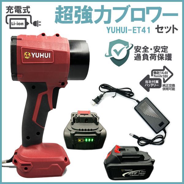 > ★送料無料・30日間保証付き★最強 ブロワー 洗車 超強力 ターボ マキタバッテリー 対応 充電式 18V 6Ah 暴風ブロワー バッテリー2個付き