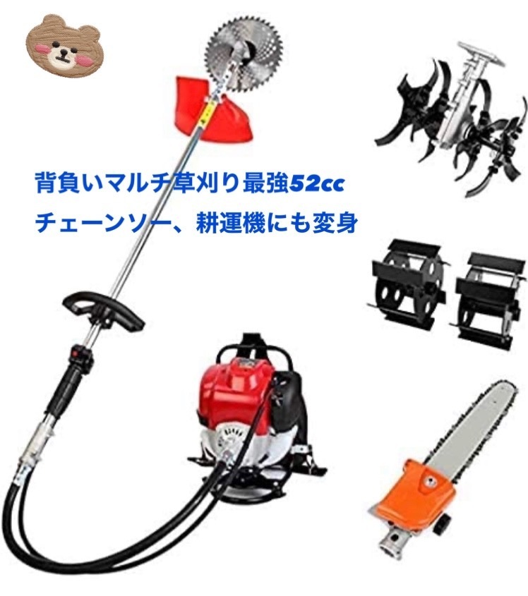 - 背負い 草刈機 チップソー ナイロンカッター チェーンソー 耕運機ローター、草刈りローター 交換自在 52cc 新品