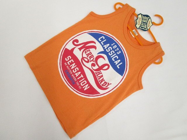 - キッズ 新品タグ付 イーストブルー EAST BLUE タンクトップ 120 オレンジ地 ホワイト×レッド×ブルー 英字プリント 【メール便可】
