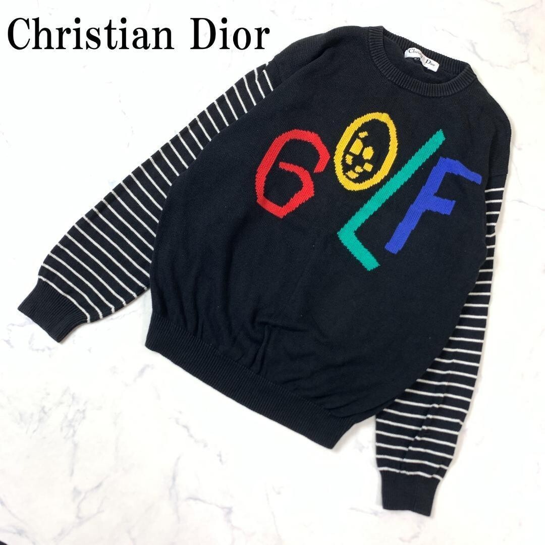 - LA7845 クリスチャンディオール Christian Dior ボーダー 切り替えデザイン カジュアル リブニット 長袖ニットセーター ブラック 綿 L