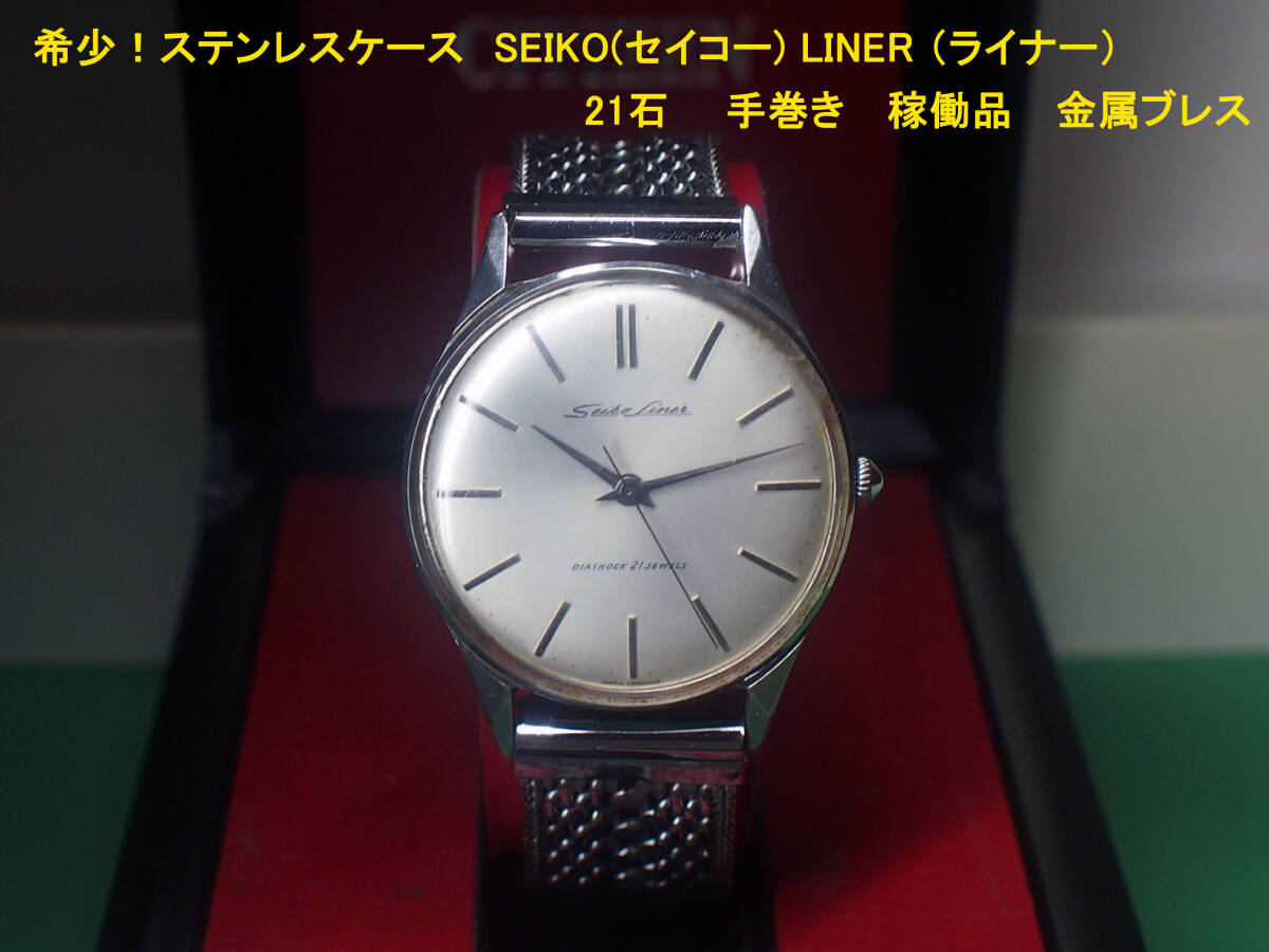 - ¶ 希少!ステンレスケース SEIKO(セイコー) LINER (ライナー) 21石 手巻き 稼働品 金属ブレス ¶