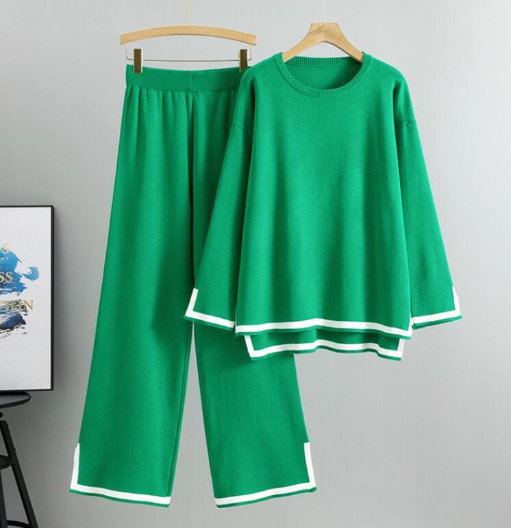 - M1015 パンツスーツレディース● 着心地抜群 20代30代40代 ● ニット素材 秋冬 2点セット グリーン