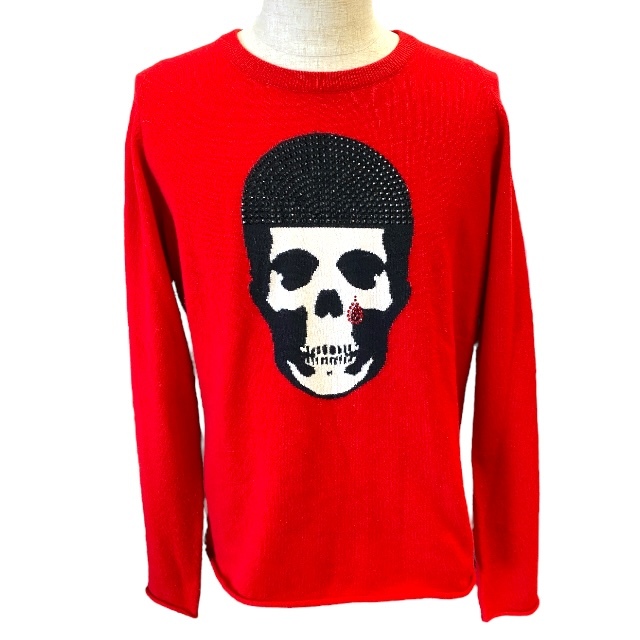 - ルシアンペラフィネ カシミヤニット セーター スカル スワロフスキー ヘルメット 涙 レッド メンズ Lucien pellat-finet[サイズM]