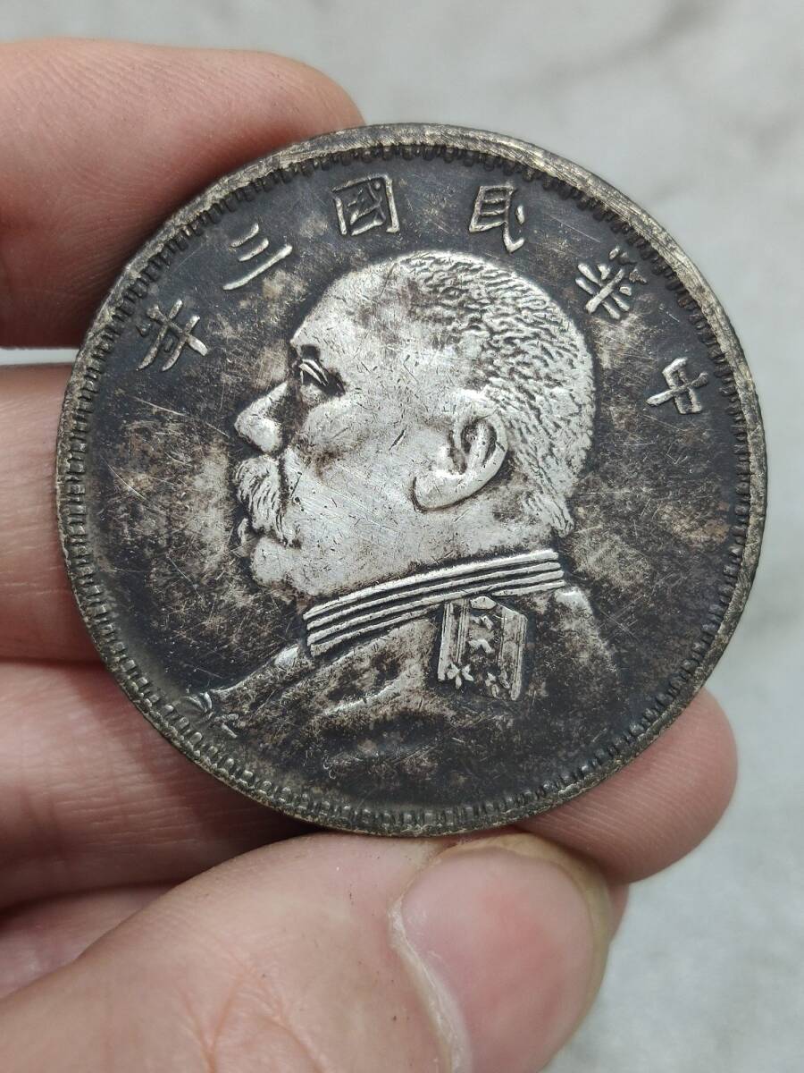 - 【超珍館蔵】本銀製 足銀 袁世凱 袁大頭 中華民国三年 壹圓 銀幣 銀元 純銀保證 銀貨 硬貨 通用 古美術品 古董品 旧家蔵出 蔵友館蔵品