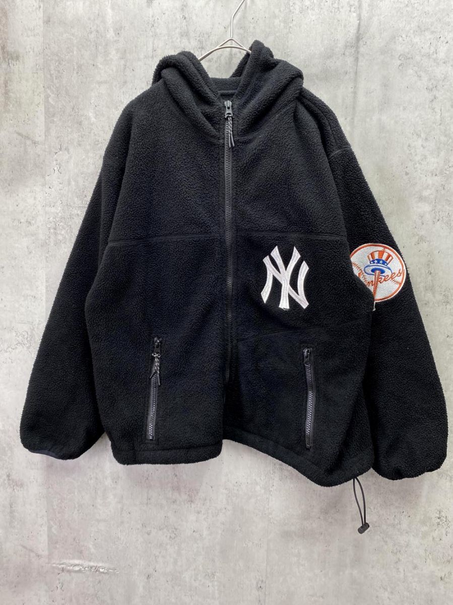 > GLAZOS グラソス チーム刺しゅうワッペン付きボアフード ジャケット sizeS/140/クロ(Yankees) ◆■