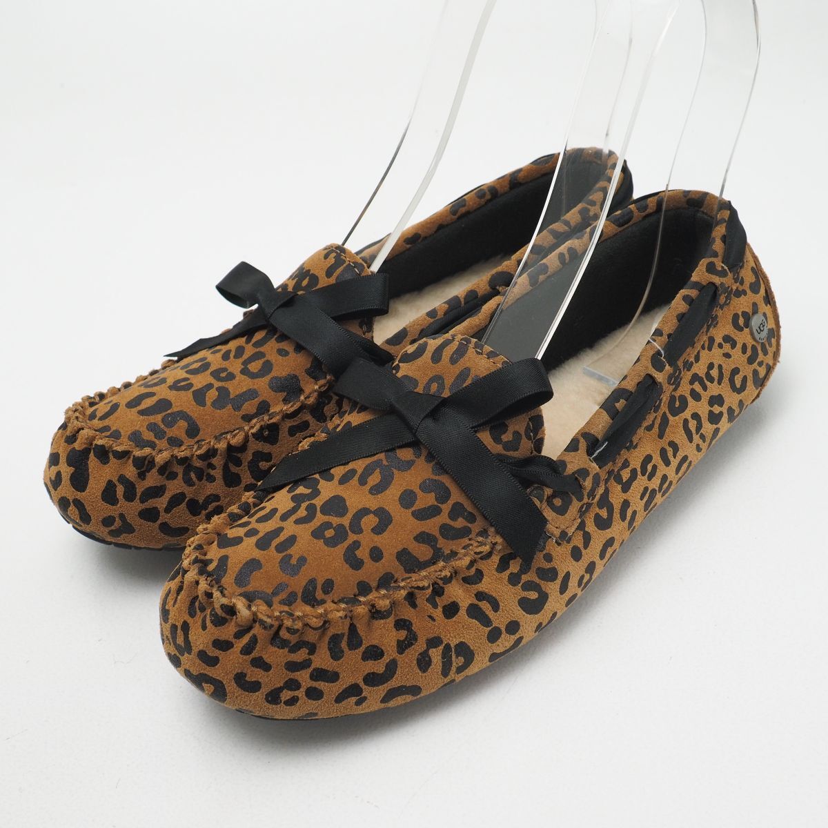- GS3598▲UGG アグ DAKOTA ダコタ レオパード柄/ヒョウ柄 スエードモカシン リボン スリッポン ローファー 靴 キッズ サイズUSA4/22.5cm