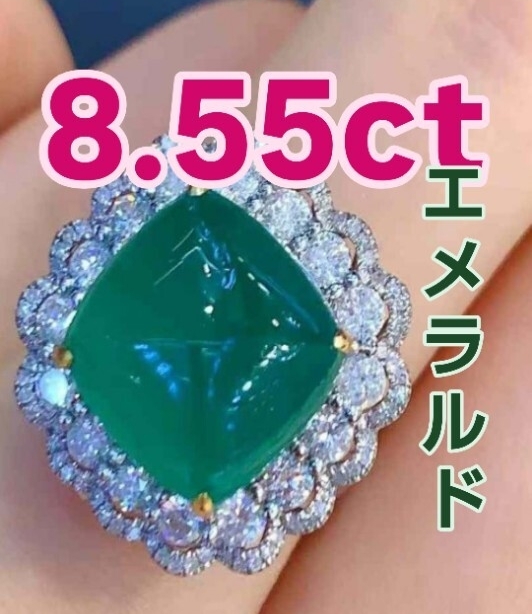 > 貴婦人への扉 8.55ct エメラルド シュガーローフ リング「深緑のシンフォニー、指先で奏でる——他にはない存在感があなたの風格を語る」