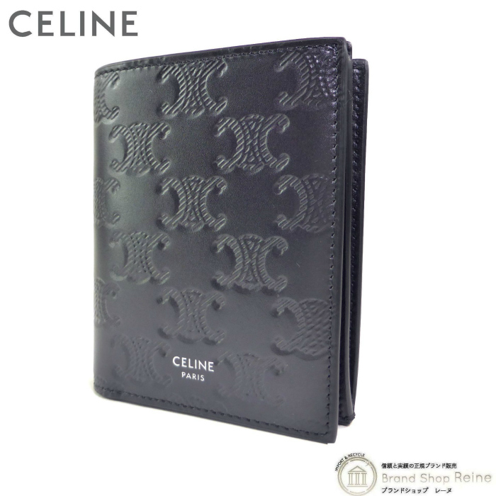 - セリーヌ (CELINE) トリオンフ エンボス加工 コンパクト ウォレット 二つ折り 財布 10E49 Black(新品)