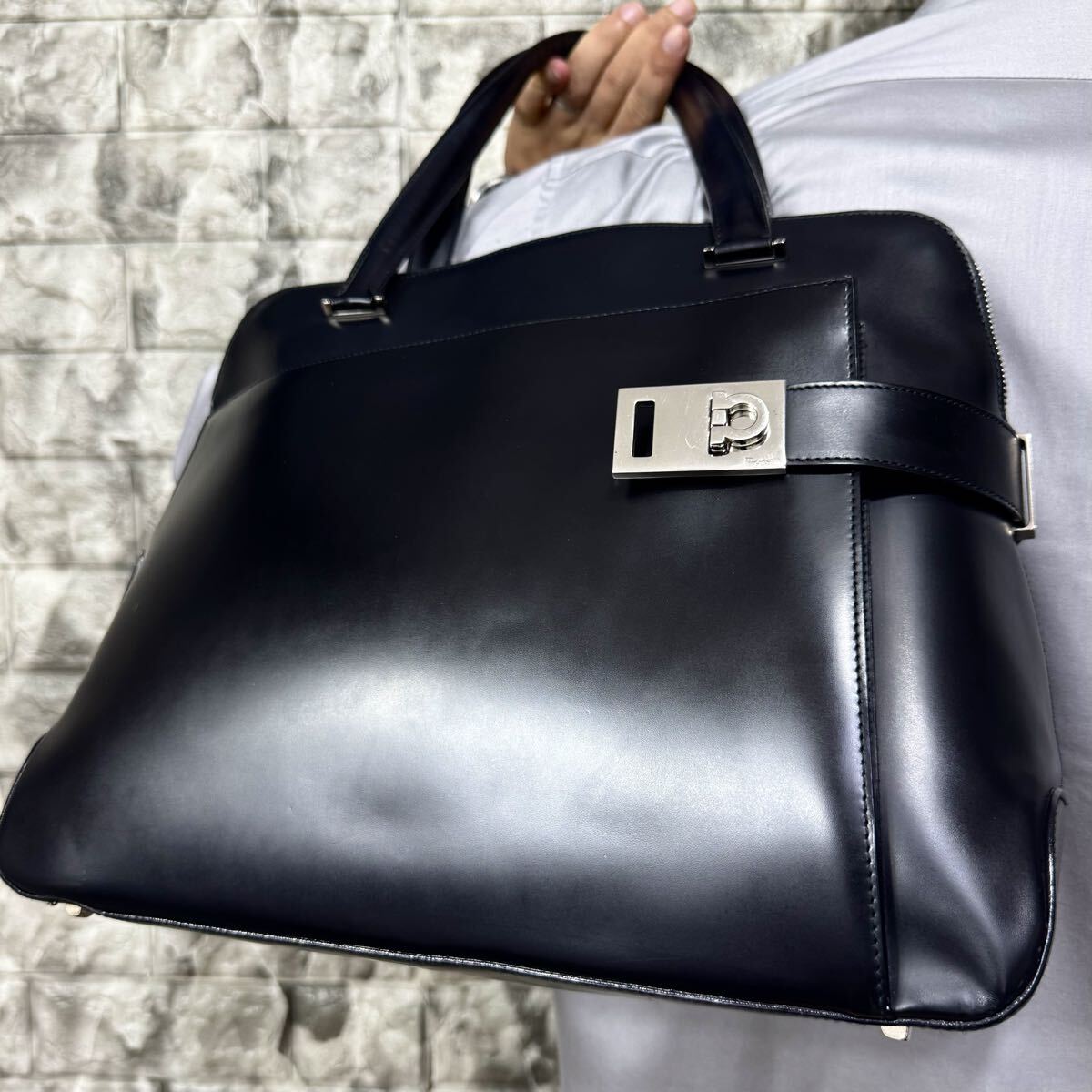 - 美品/A4収納◎ Salvatore Ferragamo フェラガモ メンズ ビジネス レザー トートバッグ ガンチーニ 肩掛け ブリーフケース ブラック 黒