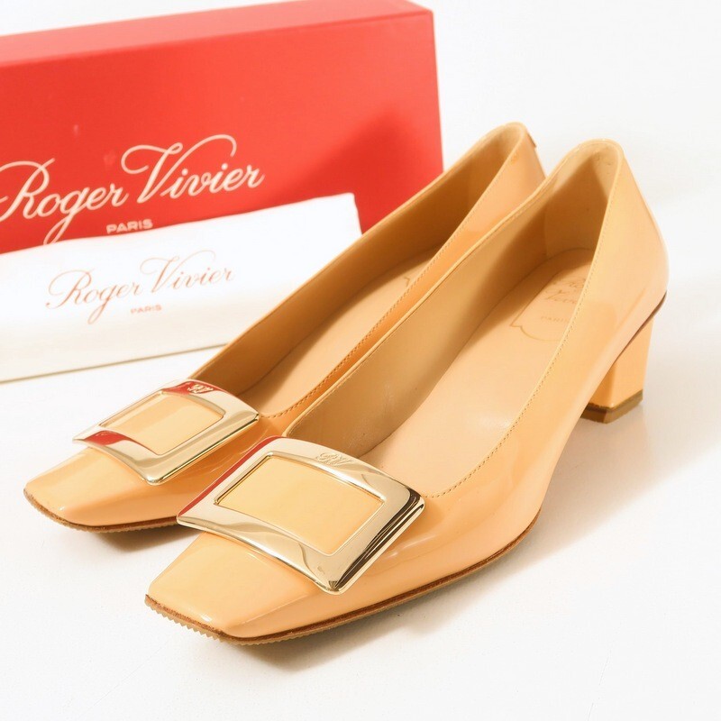 - GS3968*Roger Vivier ロジェヴィヴィエ DECOLLETE BELLE VIVIER スクエアバックル パテントレザー パンプス 36(23cm相当) 靴 ベージュ