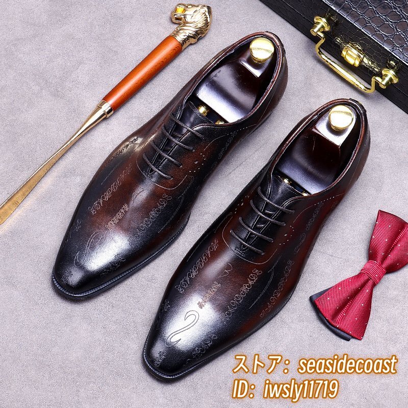 - 極美品*定価9万 新品 ビジネスシューズ 最高級 牛革 レザーシューズ 職人手作り 紳士靴 本革 ドレスシューズ 革靴 結婚式 珈琲色 26.5cm