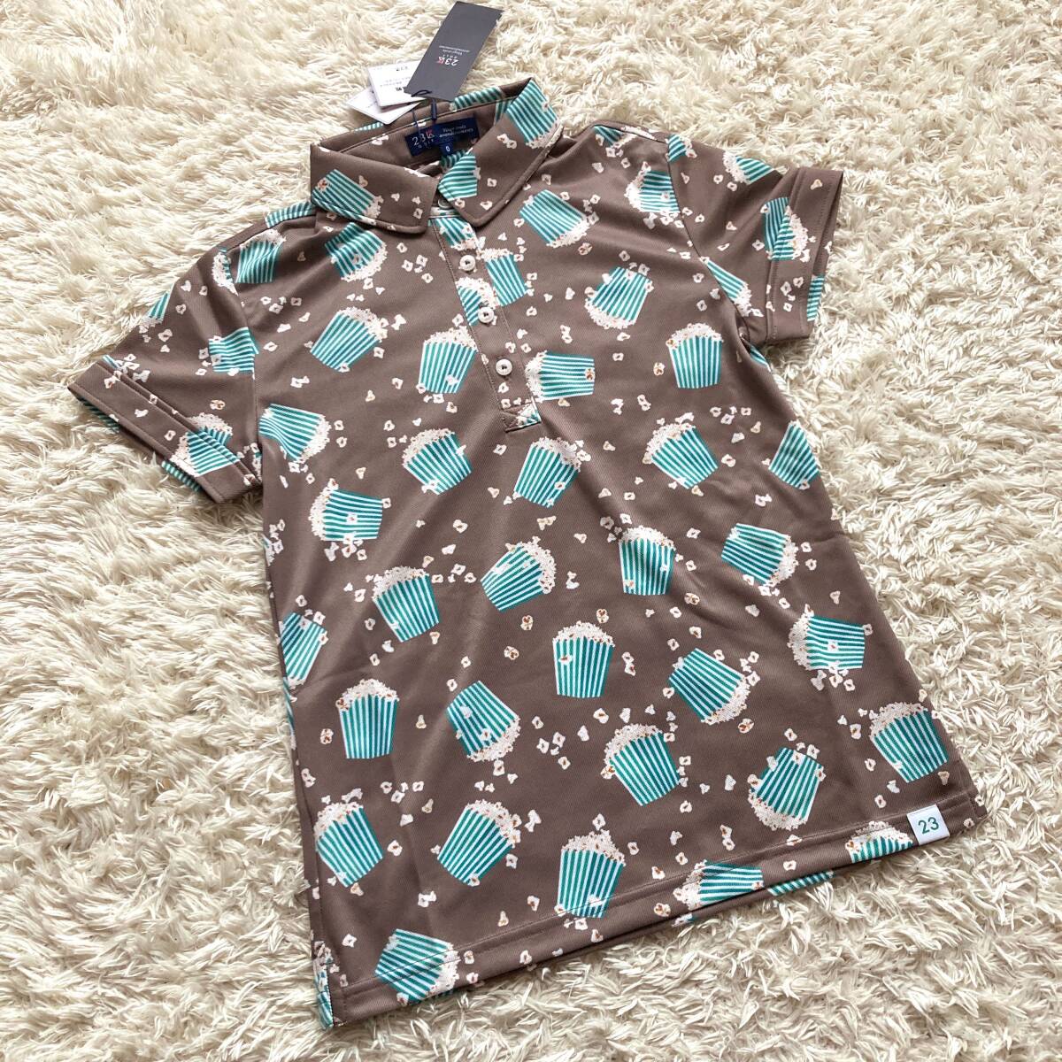 > 新品 未使用 23区ゴルフ ポップコーン柄 半袖 ポロシャツ ベージュ 水色 0 レディースS ニジュウサンク ゴルフ