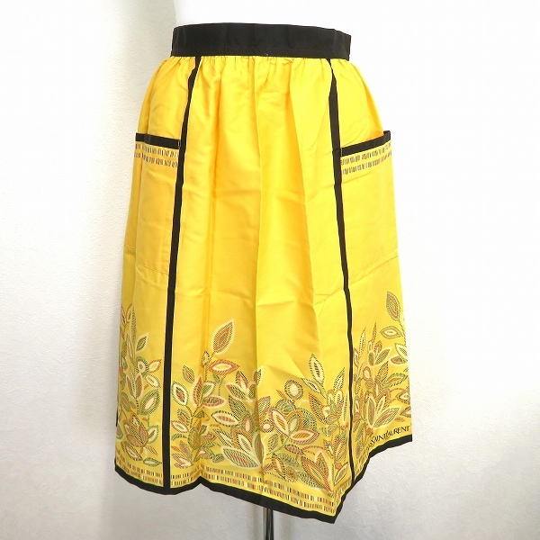 > #ae イヴサンローラン Yves Saint Laurent エプロン 黄色系 黒 裾柄 綿 100% ウエストエプロン 日本製 タグ付き 新品同様 [937495] k01