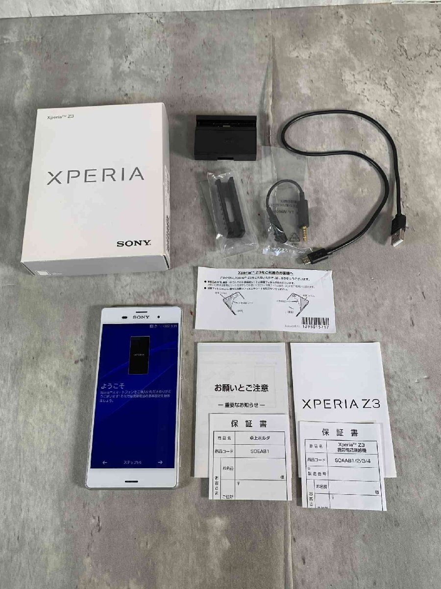 > 【美品】【動作OK】SONY XPERIA Z3 ホワイト SOSAB1/2G/3G/LTE 箱その他付属品付き 残債なし【送料無料】