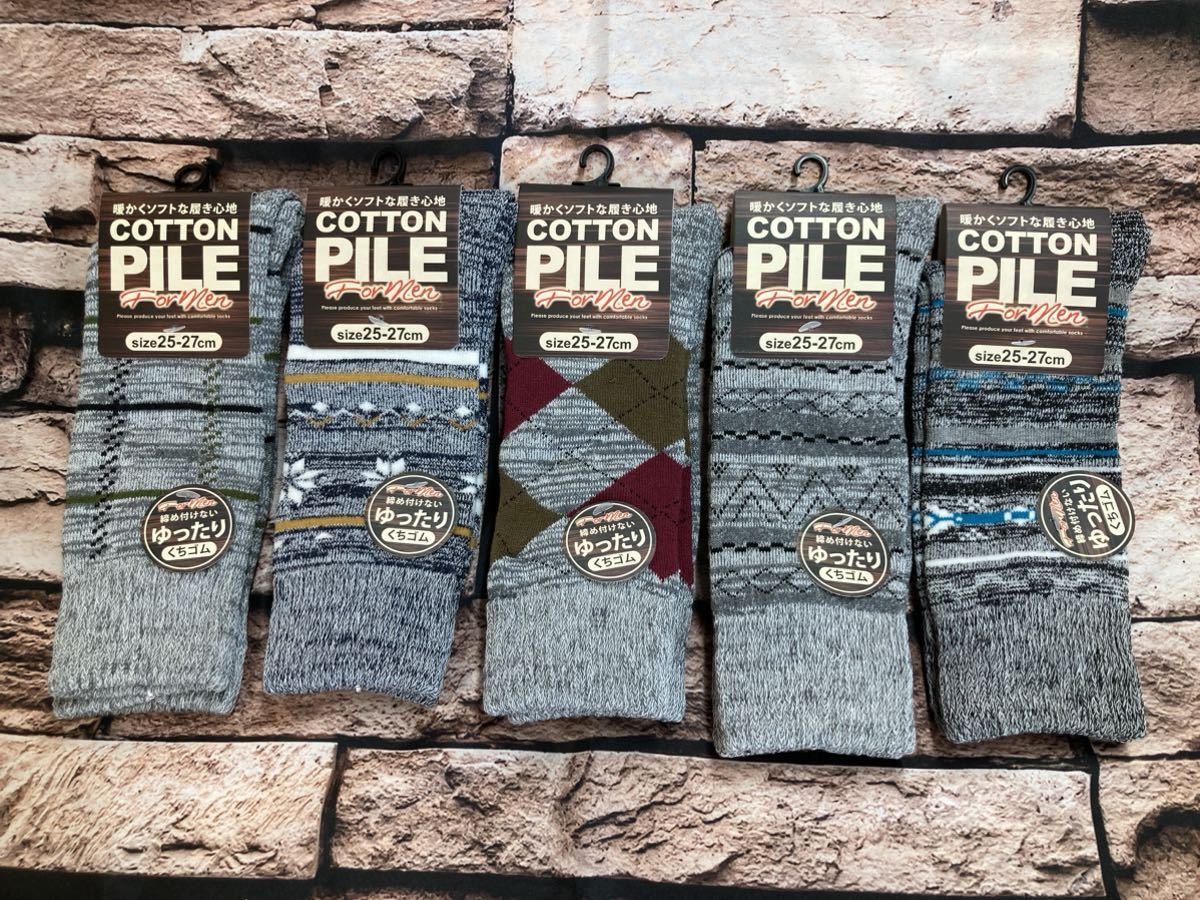 - 『画像から4足組』暖かく、締め付けない口ゴムゆったりでソフトな履き心地!メンズクルー丈 綿混 パイルソックス